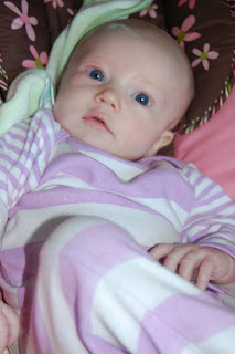 Josie had her two month checkup yesterday. We've been waiting for this one, A) because it's a milestone and B) because Josie is actually almost 3 months old and still in newborn clothing. Too small for some of it, actually. I am kind of surprised at how a lot of baby clothing makers think babies are shaped sometimes. I know she's small for her age but still, it's like they think all babies are shaped like basketballs. Short and fat. Anyways.. her checkup. Turns out she is in the 20th percentile for weight and length, and 75th for head circumference! We have a bit of a bobble-head on our hands! It's ok, though, because she fits into a lot of the warm hats we bought before she was born. She has also outgrown a few of the cute ones, though, but it just gives me a reason to find some more =)